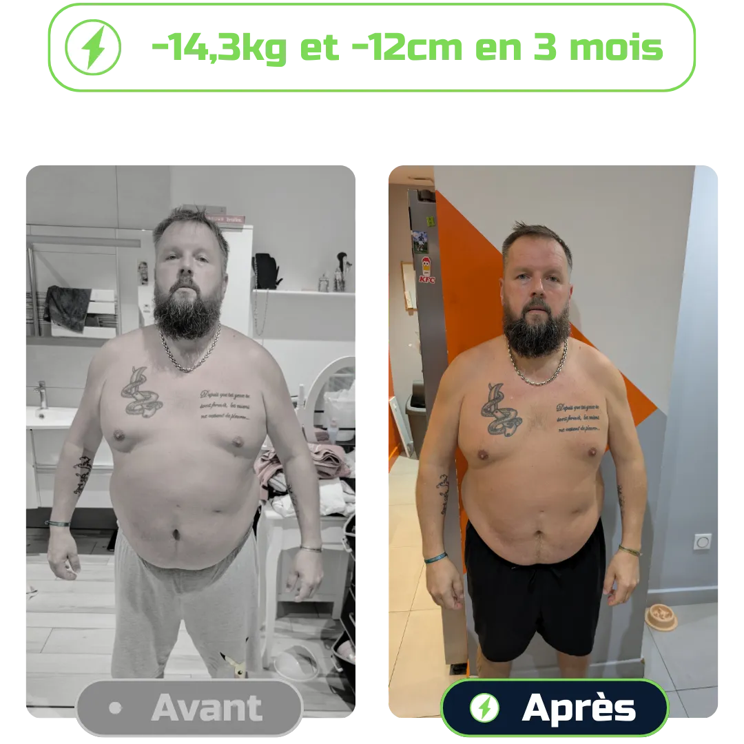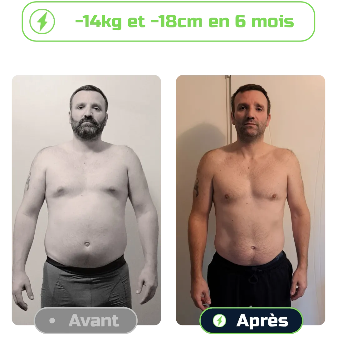 Au-delà d'une perte de poids saine et harmonieuse te permettant d'aller chercher un corps musclé et tonique, tu vas adopter un mode de vie plus sain et moins sédentaire. Résultats ? Une santé au top, un niveau d'énergie décuplé, des performances boostés, une meilleure libido, et surtout des outils qui te permettront de maintenir tes résultats sur le long terme.